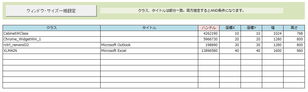 ▼シート「ウィンドウ・サイズを一括調整」・・・ウィンドウ・サイズと位置を一括して指定することができます。