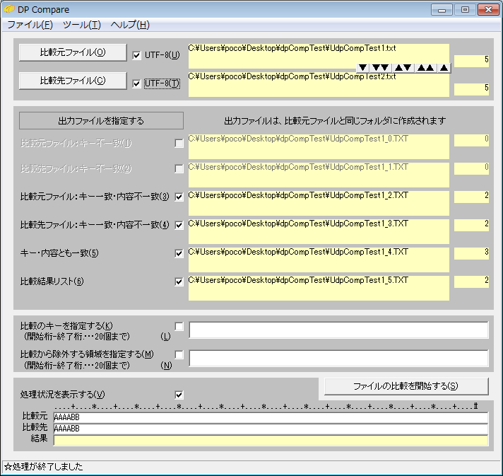テキスト・ファイルを比較するツールです。簡単なマッチング処理もできます。